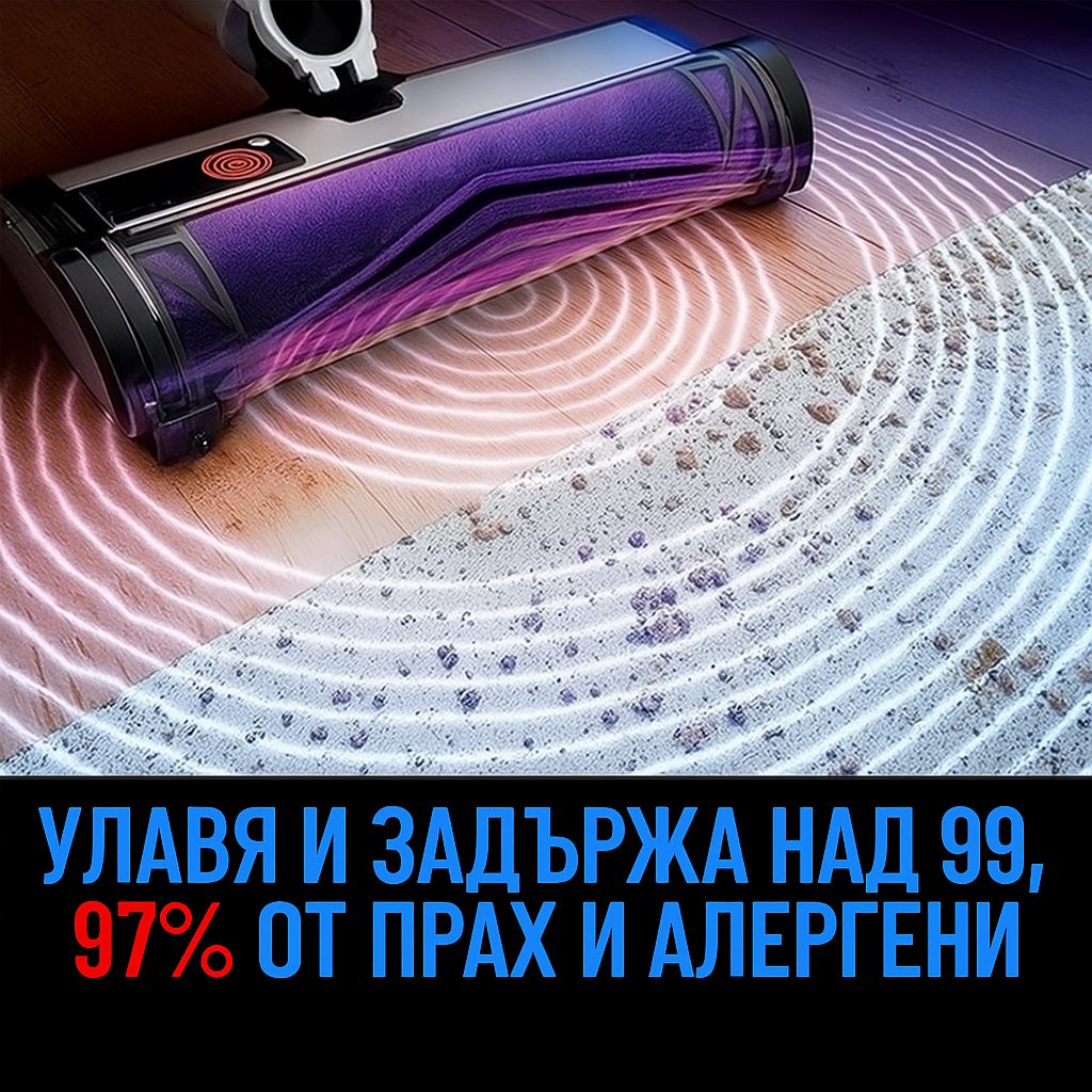 Ергономичният дизайн го прави лесен за управление и съхранение, а HEPA филтърът улавя 99,9% от праха и алергените.