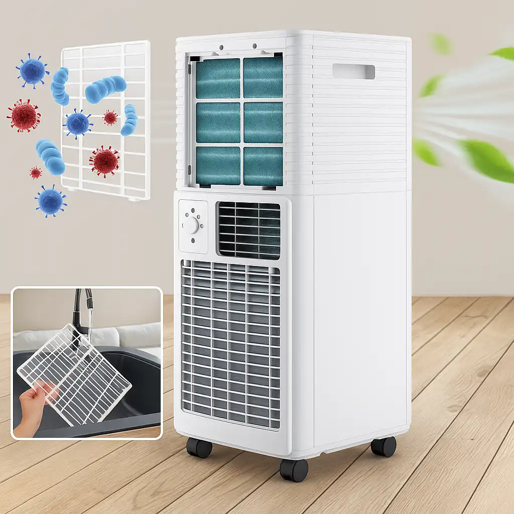 Equipado con control desde el smartphone, puedes ajustar la temperatura incluso cuando estás fuera de casa. La función silenciosa garantiza un sueño tranquilo, mientras que el filtro lavable protege la calidad del aire. Sin instalaciones complicadas: ¡está listo para usar!