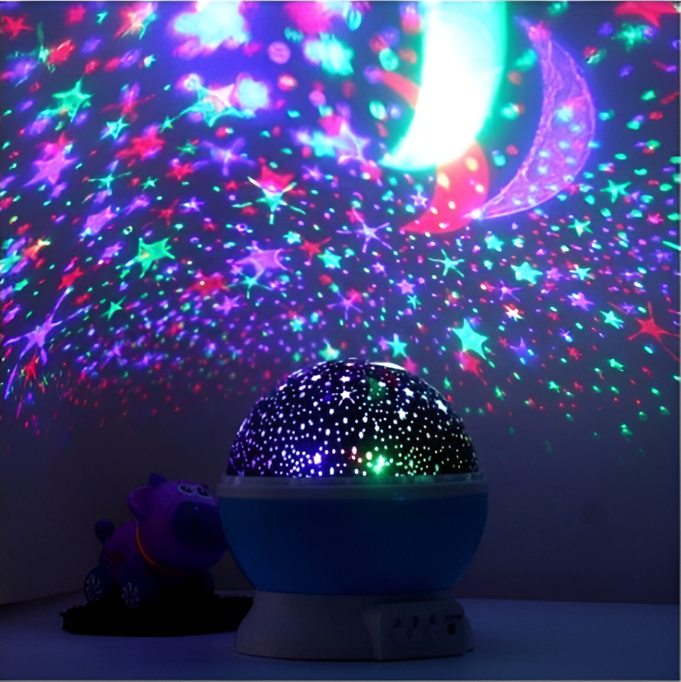 Lampa de veghe este un accesoriu minunat si functional pentru camera copiilor, proiectand un univers magic de stele si luna pe tavan sau pereti. Cu un design delicat si o nuanta plina de viata, aceasta lampa de veghe albastra aduce o atmosfera calda si reconfortanta in camera micutilor.