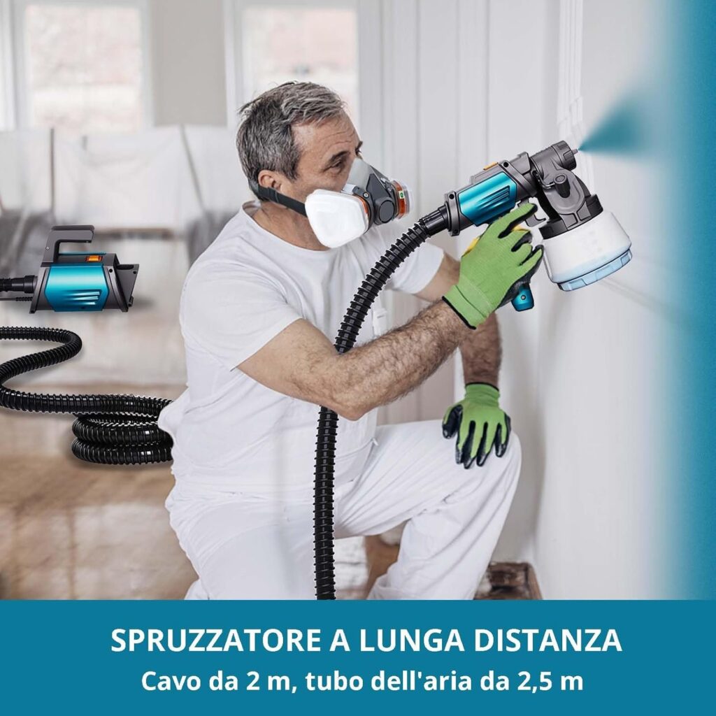 4 FÚVÓKA ÉS 3 PERMETEZÉSI MÓD: A szórófestő 4 különböző méretű fúvókával rendelkezik (1 mm, 1,5 mm, 2 mm, 3,0 mm), így alkalmas a legtöbb festési projekthez, például bútorok, pick-upok, falak, ajtók, asztalok és kerti székek festésére. A beltéri falfestő pisztoly 3 különböző permetezési mintázatra állítható: vízszintes, függőleges és kör alakú, lehetővé téve széles körű alkalmazását.