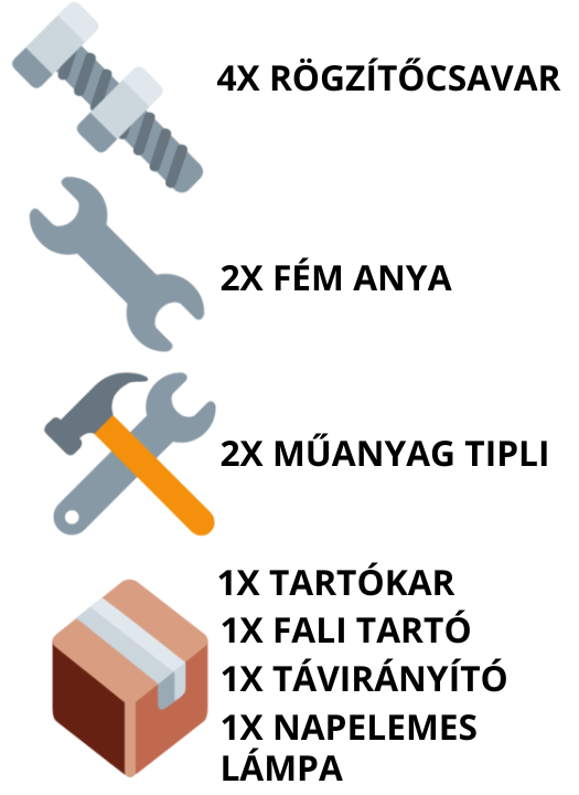 A mellékelt tartozékokkal könnyen felszerelhető. Nem kell villanyszerelő, nincs szükség hálózatra.